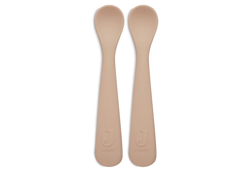 Het lepeltje is verpakt per 2 en uitgevoerd in 6 kleuren. Het lepeltje past perfect bij het siliconen servies van Jollein.